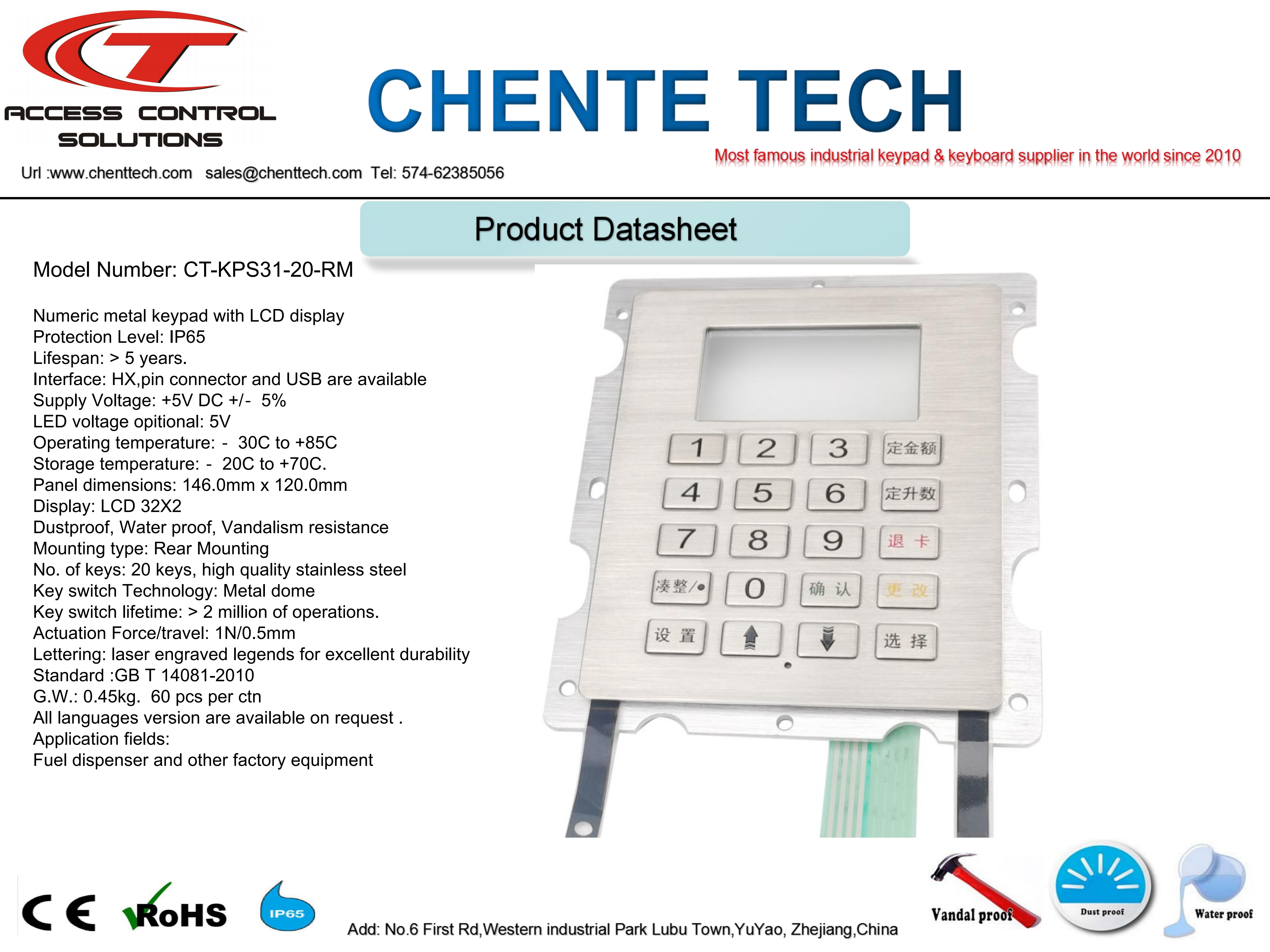 ChenTe are manufactured to kind of metal keypads,metal keyboard,numeric keypad,backlit keypad,illuminated keypad,lighted keypad,access control keypad,die cast keypad and PC keyboard. Custom made to your needs, our keypad are perfect for industrial ,security and commerical use. such as access control systems , ticket entry, industrial machining ,self-terminal, internet terminals and information kiosks at universities, shoppimetal keypadng malls, hotels, banks,military,airports, railway-stations and other public areas.